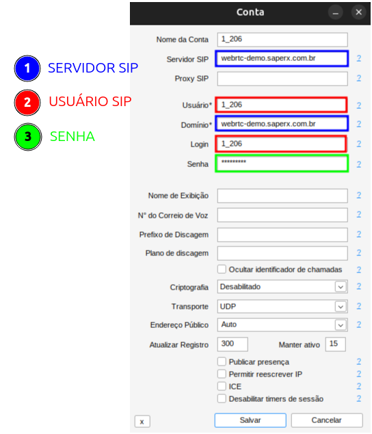 - Ramal SIP: Número do ramal que você deseja criar (ex: