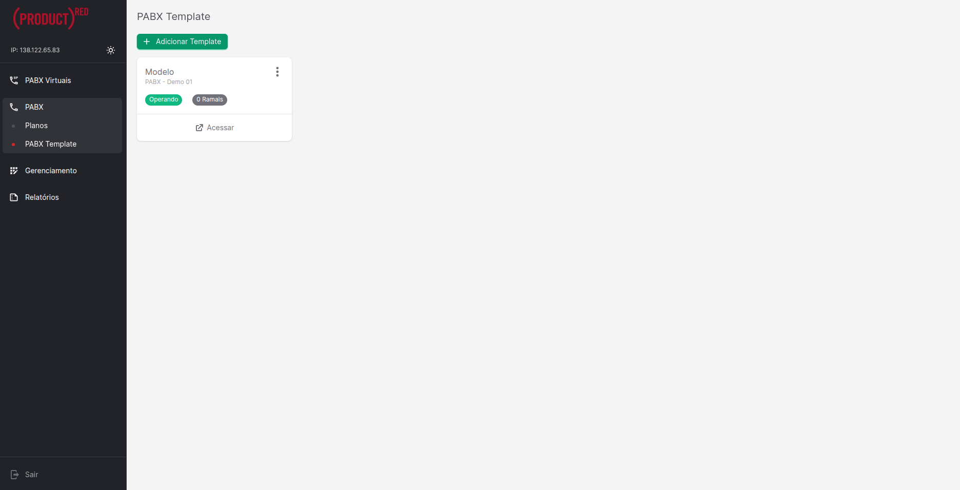 A configuração de um template segue praticamente o mesmo procedimento da configuração de um PABX Virtual. Para editar ou criar um template, basta clicar em Acessar no cartão correspondente.