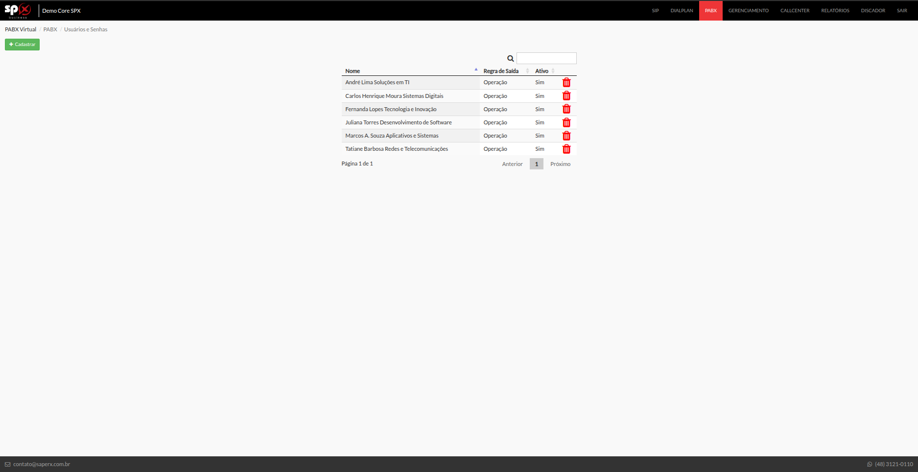 Usuários e Senhas, PABX Virtual, ramais, ligações com senha, regra de saída